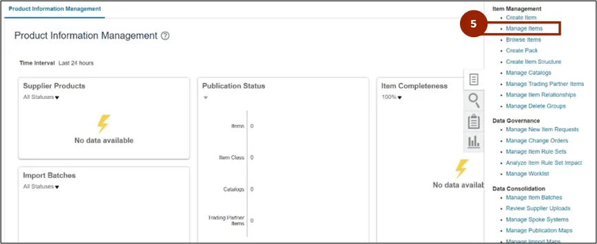 The next section of the process flow includes additional activities that complete the Product Master Data management process. These include Add Associations, Define Categories, Save Progress, View and Verify Item Details, Define MFG Template Structure and Finalize and Complete.
