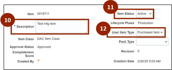 Note: If a change to the User Item Type is needed, it is best practice to mark the existing Item Status as Inactive and create a new item with the desired type to maintain data integrity.