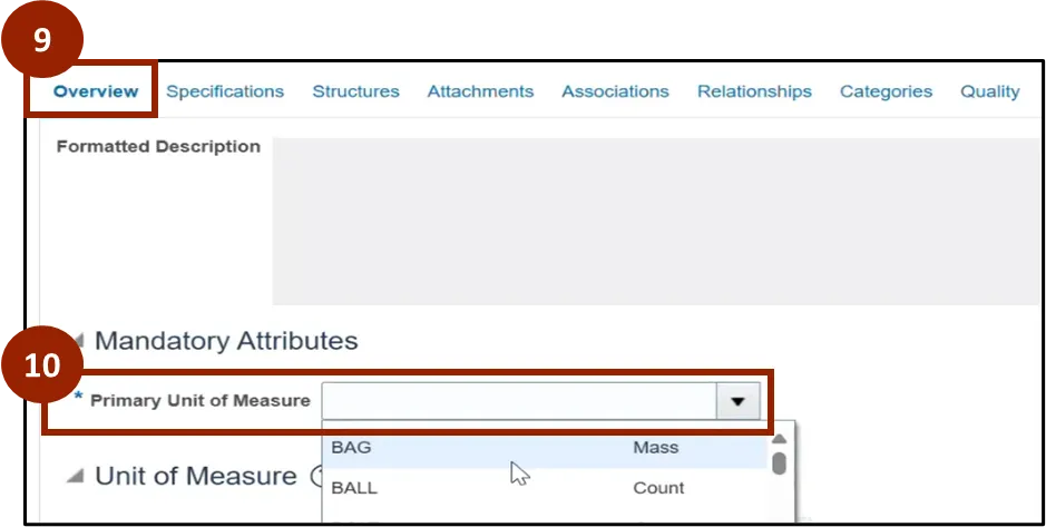 Step 10. Select the appropriate Unit of Measure (UOM) within the Primary Unit of Measure field based on item type (e.g., for a business card, the UOM would be “Each”).
