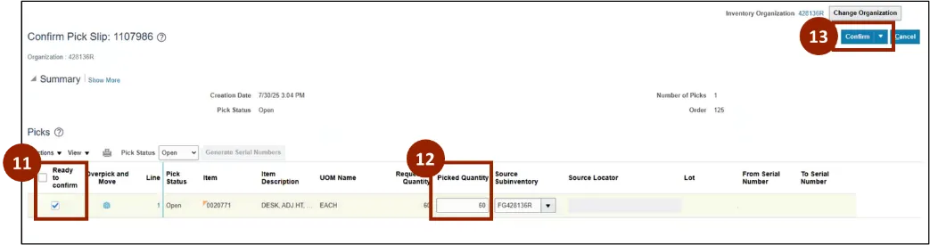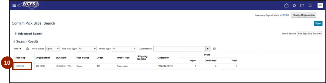 Step 6. Select Confirm Pick Slip.