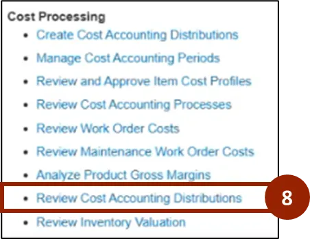 Step 8. Within the Task tab, select Review Cost Accounting Distributions.