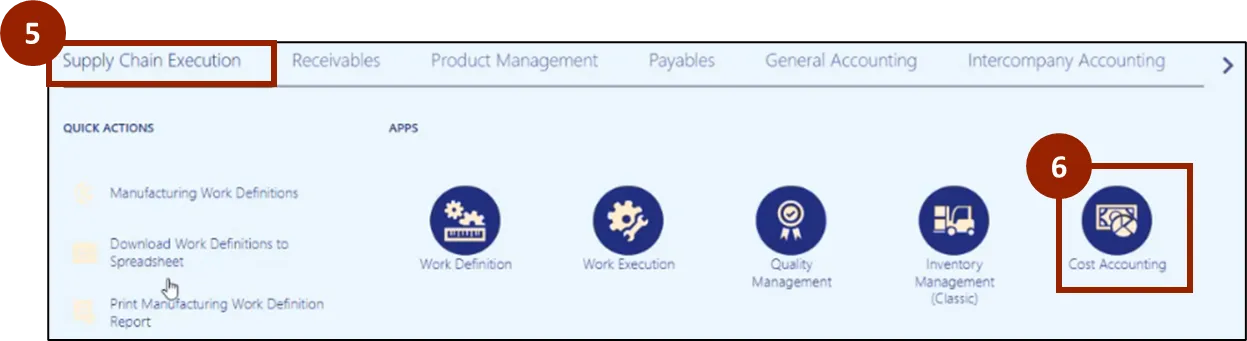 Step 6. Within the Supply Chain Execution tab, select Cost Accounting.