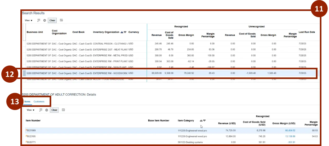 Note: Select any blue number within the Gross Margin column to view more detail.