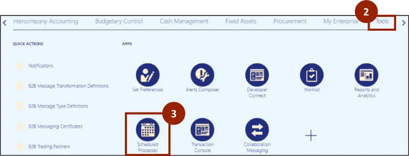 Step 3. Within the Tools tab, select Scheduled Processes.