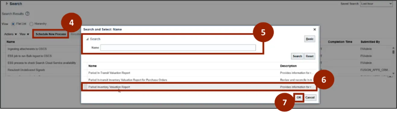 Step 5. On the Search and Select pop up, click the drop-down and type in the search bar Period Inventory Valuation Report and select the Search button.