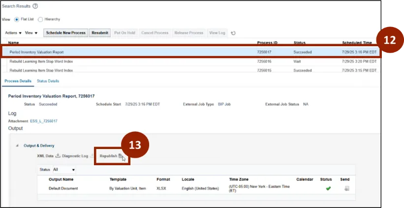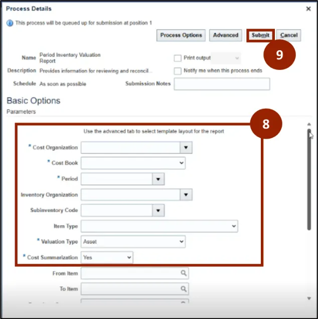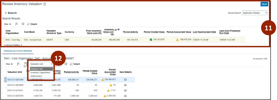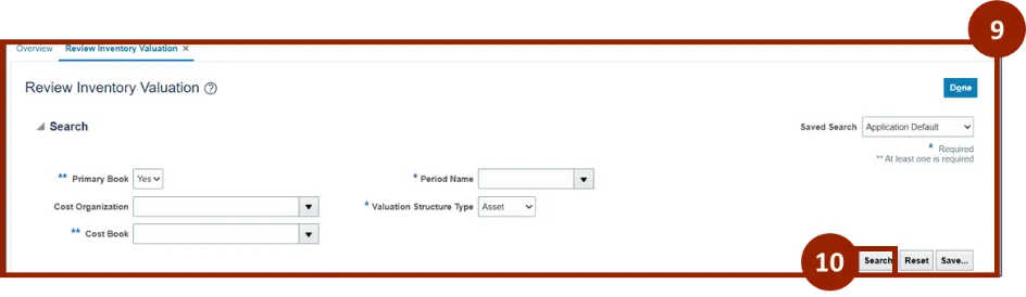 Step 9. Within the Review Inventory Valuation screen, search for the inventory valuation using the parameters