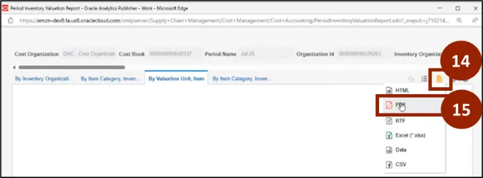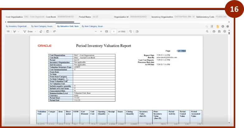 Step 16. View the Period Inventory Valuation Report within the PDF pop-up.