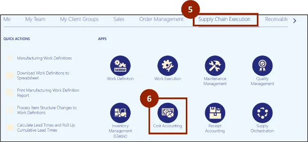 Step 6. Within the Supply Chain Execution tab, select Cost Accounting.