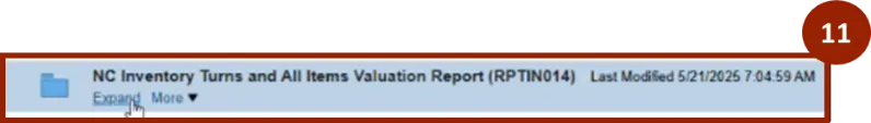 Step 11. Select Expand under NC Inventory Turns and All Items Valuation Report (RPTIN014).