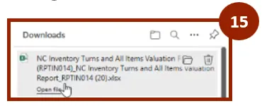 Step 15. From your browser’s Downloads tab, select Open file on the Excel file named NC Inventory and All Items Valuation.