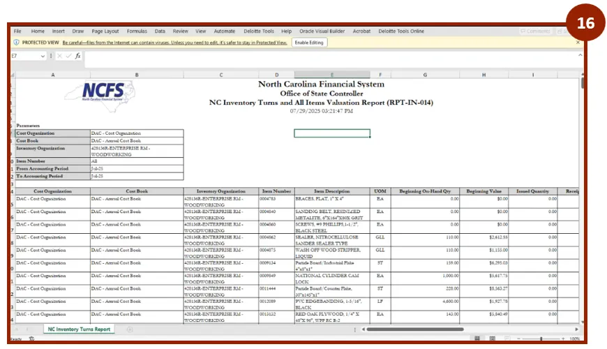 NC Inventory Turns and All Items Valuation Report (RPT-IN-014)