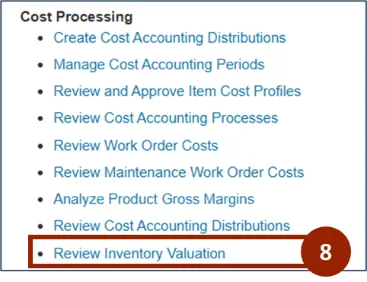 Step 8. Within the Task tab, select Review Inventory Valuation.