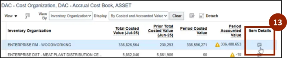 Step 13. To view the inventory value by item, click the Item Details in the summary table.