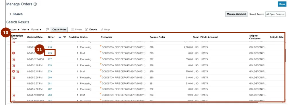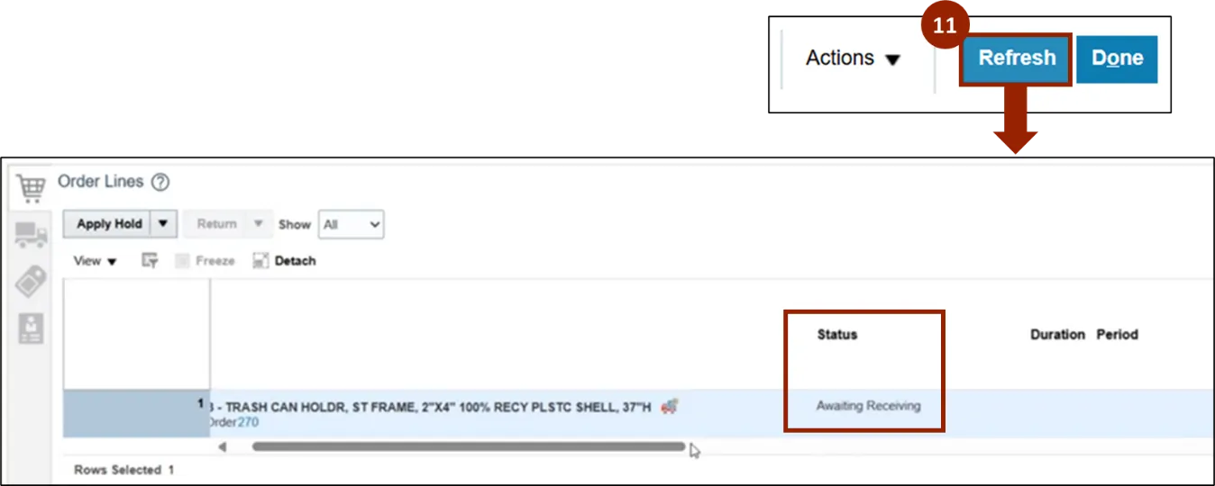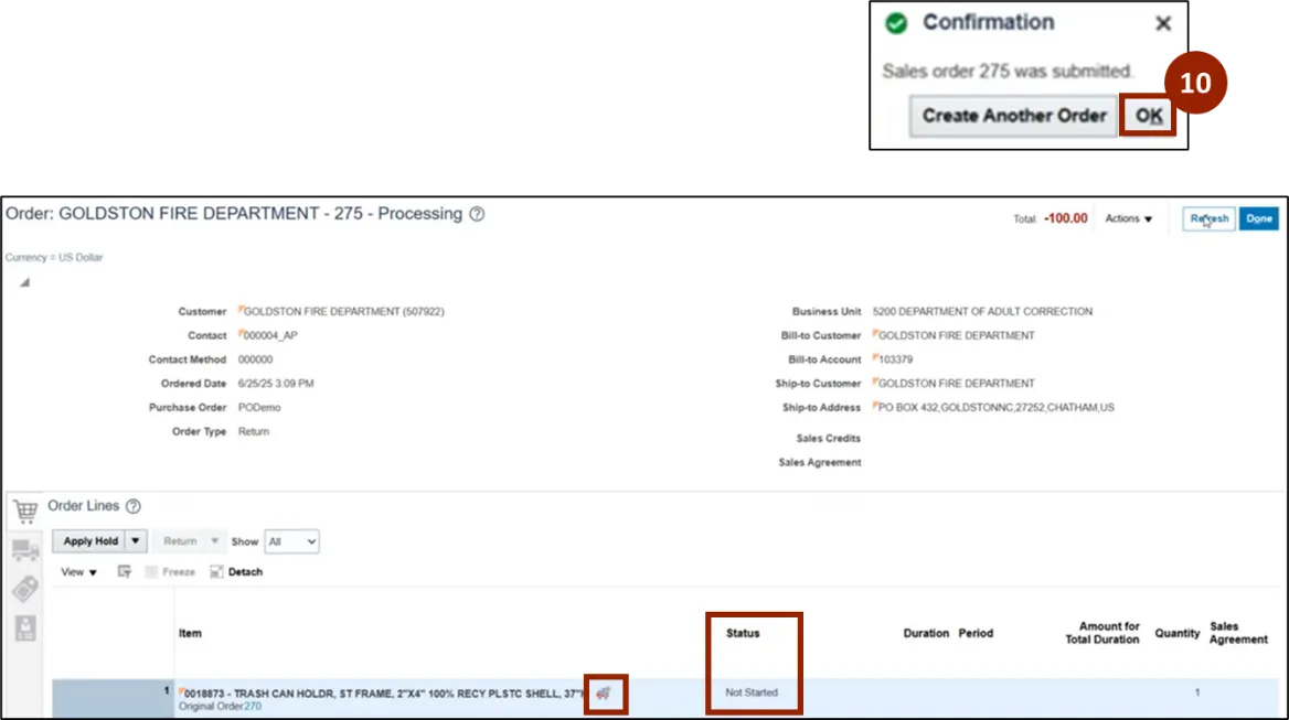 - Once submitted, order line status updates to “Awaiting Billing”.