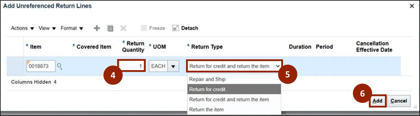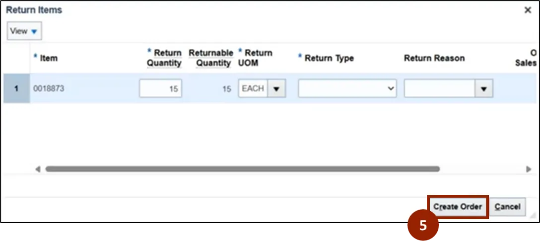 Step 4. In the Return Quantity field, enter the number of items the customer needs to return.