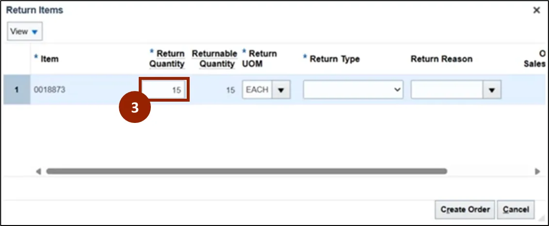 Step 3. In the Return Quantity field, enter the number of items the customer needs to return.