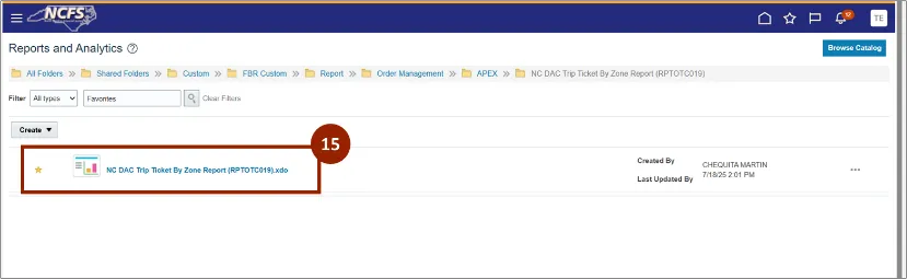 Step 15. Once you are done viewing the report, the Report and Analytics page displays. Select the NC DAC Trip Ticket Zone Report (RPTOTC019).