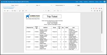 This report is generated for a specific order and provided to the truck driver for customer delivery. The driver will also use the report to obtain the customer’s signature as proof of delivery.