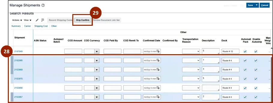 Step 94. The shipments appear on the Search Results section of the Manage Shipments page.