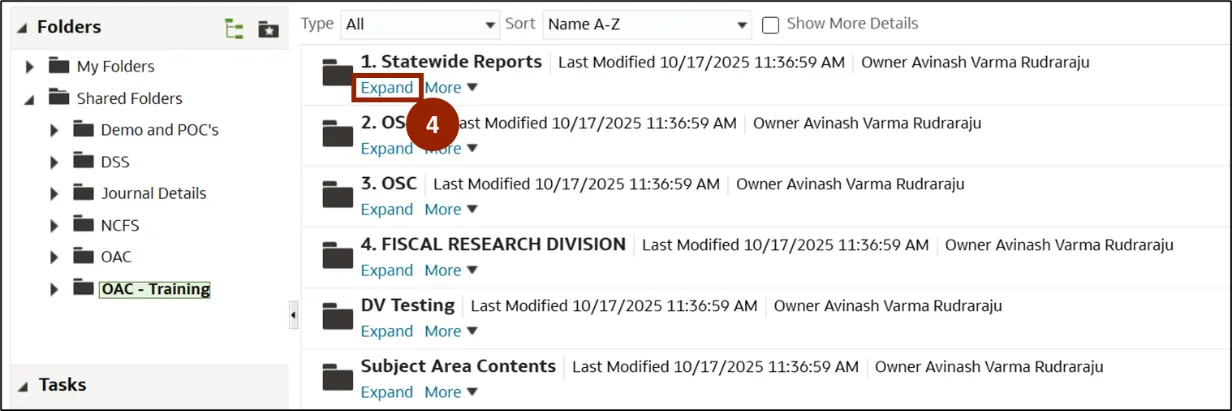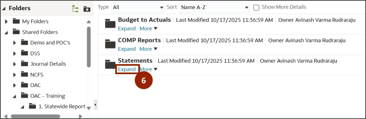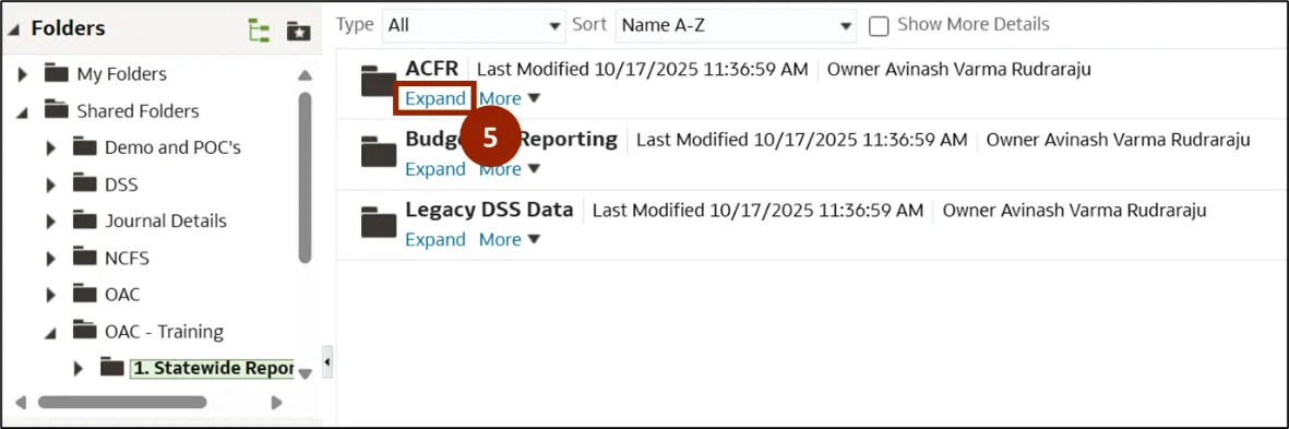 Step 4.    In the OAC folder, click Expand under the Statewide Reports folder.