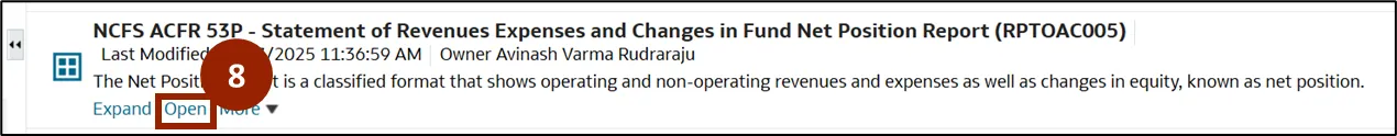 Step 8.    All the reports are displayed. Scroll down and click Open to view the desired report.