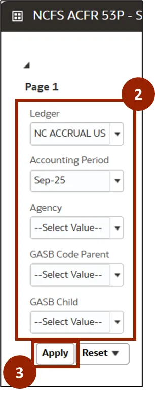 Follow the below steps to apply filters or parameters to the report. There are 4 steps to complete this process.