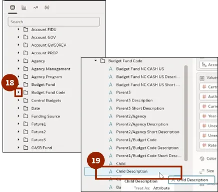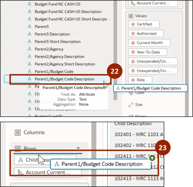 Step 22.    Next, select and hold Parent1/Budget Code Description.