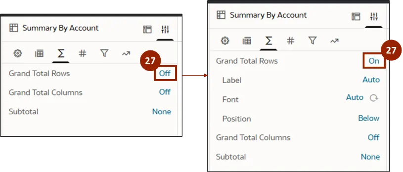 Step 27.    Click Off for Grand Total Rows to toggle it On