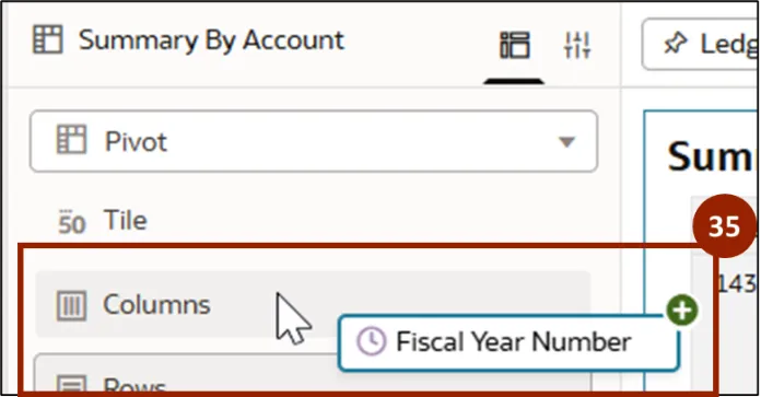 Step 35.    Drop Fiscal Year Number in the Columns section.