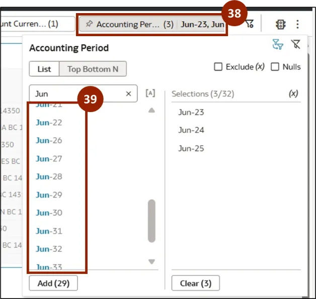 Step 38.    Next, click Accounting Period filter.