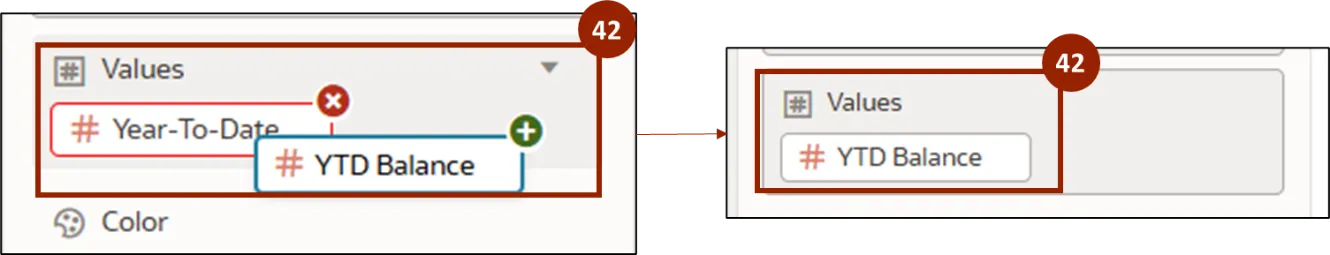 Step 42.    Drop YTD Balance into the Values section to replace the existing Value field.