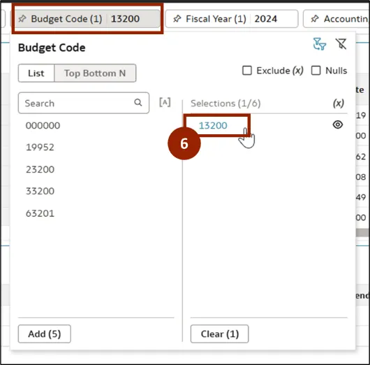 Step 5.    Click the Budget Code filter.