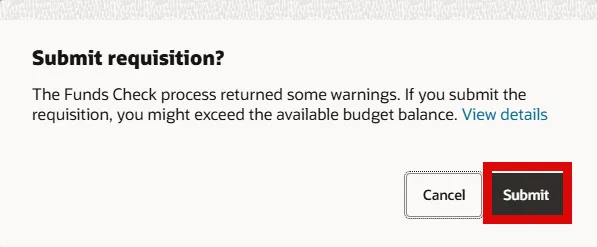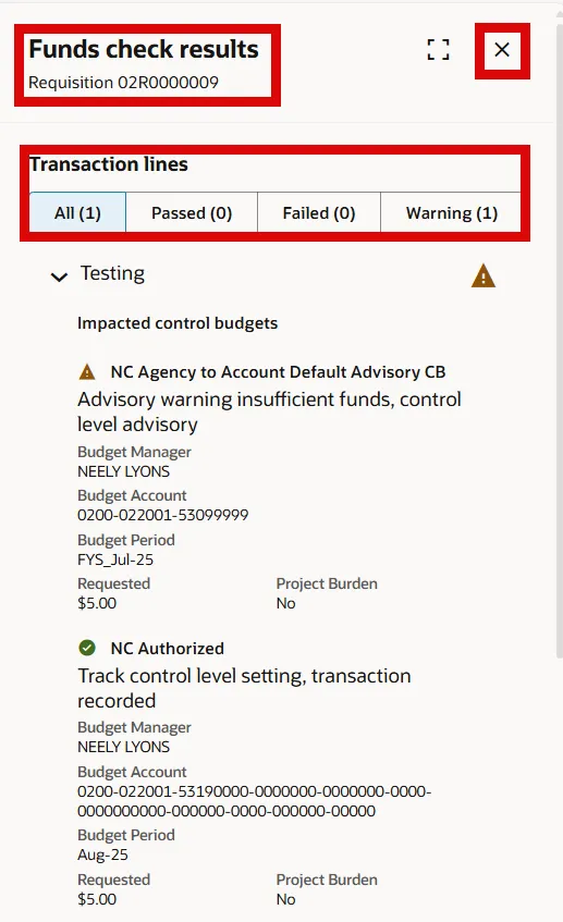 Step 16. A Pop-Up Box will appear, if there are any Funds Check warnings.