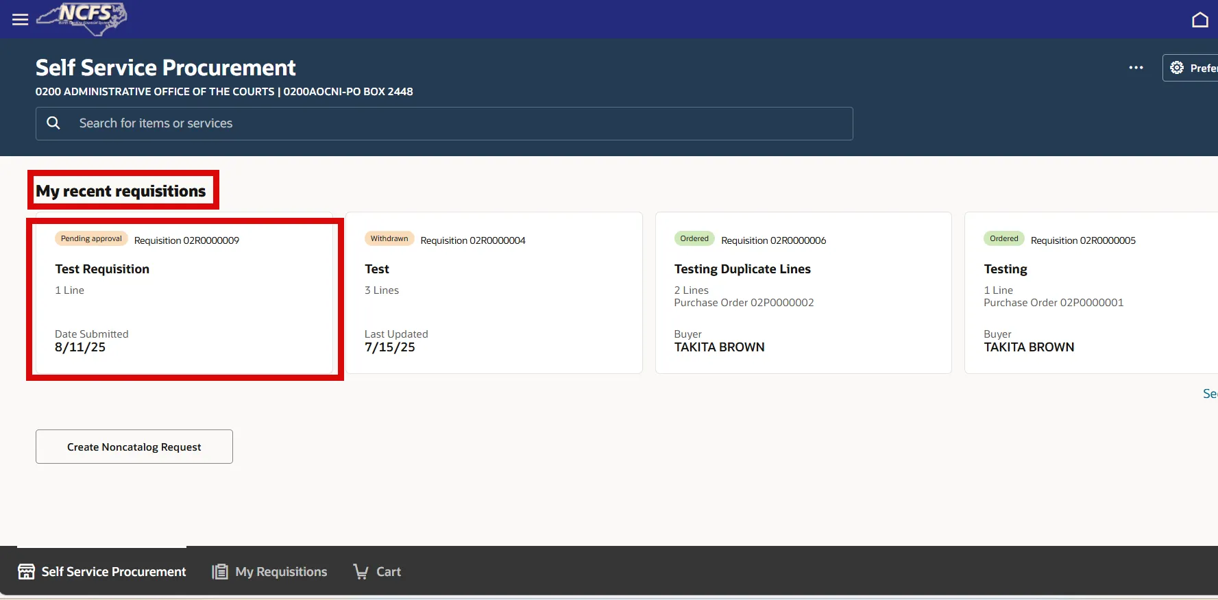 Step 19. On the Requisitions page, under My Recent Requisitions section, you can view the recently submitted Requisition and its status.