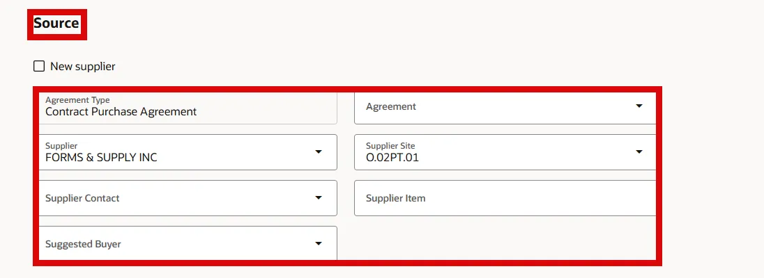 Step 5. On the New Requestion Line page, on the Source section, enter the required details.