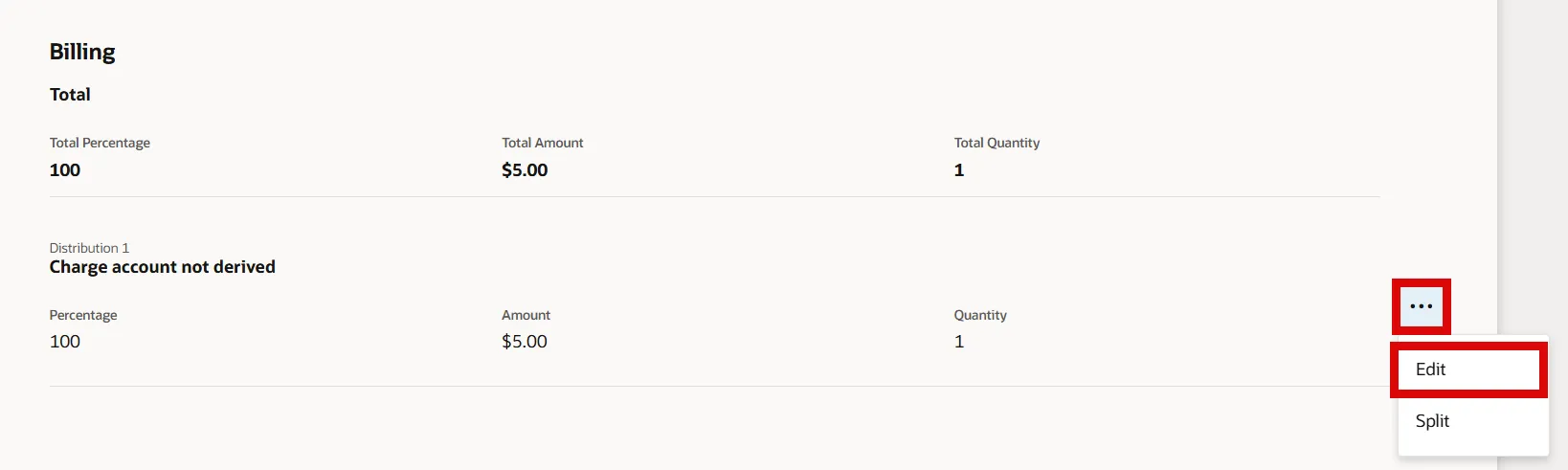 Step 9. Under the Billing section, select the Actions for Test (…) and select the Edit option, and enter the Chart of Account details