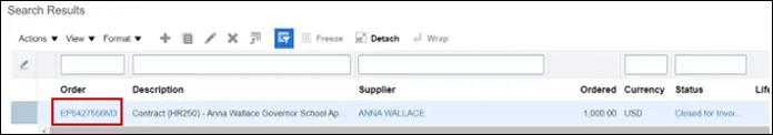 Step 5. The PO you searched for will be displayed. Click on the Order number link to view the PO.